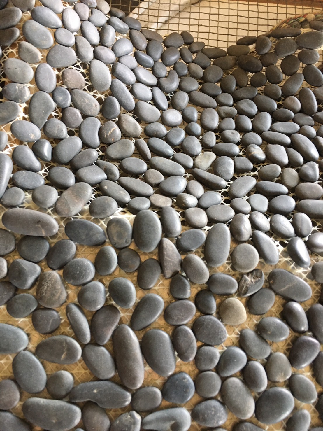 The Big Pebble Mosaic is made from a combination of river stone and beach stone, giving it a natural and authentic look. Each stone is carefully selected for its color and texture, resulting in a truly one-of-a-kind mosaic. The stones are available in various sizes, ranging from 20-40mm, and have a thickness of 5-10mm, depending on the stone size.